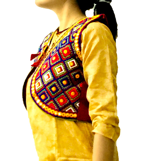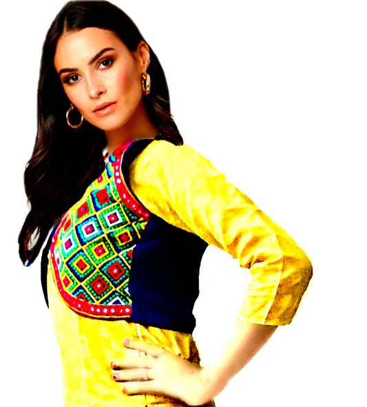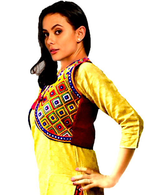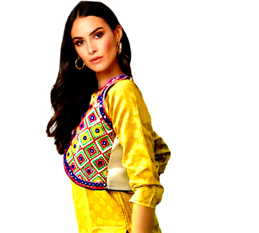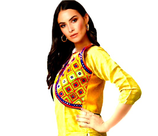 Runjhun Yellow Embroidered Barfi Mirror Koti