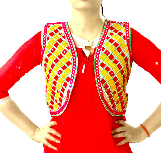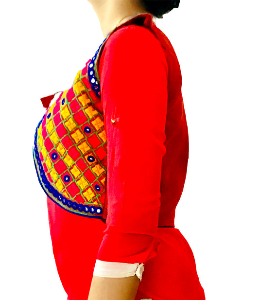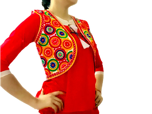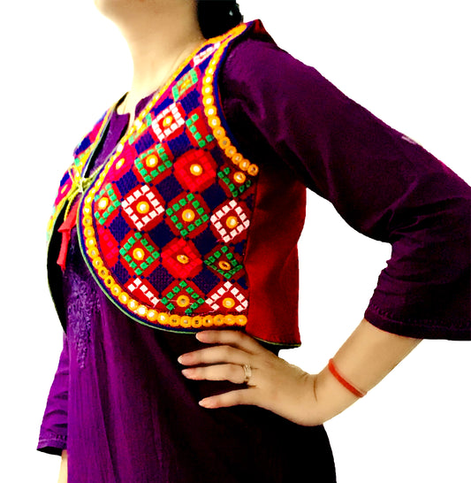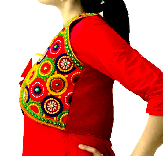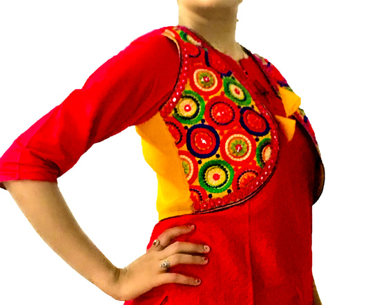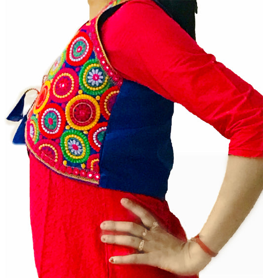 Runjhun Ethnic Red Chequered Mirror Koti