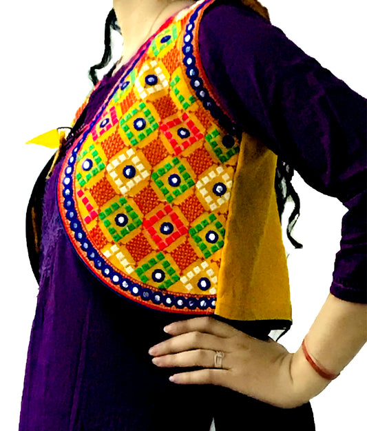 Runjhun Yellow Phulkari Mirror Koti