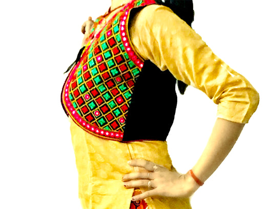 Runjhun Ethnic Black Chequered Mirror Koti