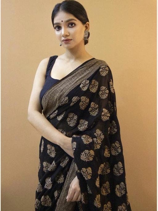 Women's Stylish Maroon and Golden Cotton Silk Saree