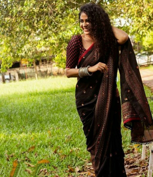 Hand Embroidered Black Georgette Half Jaal Lucknow Chikankari Saree With Blouse Piece