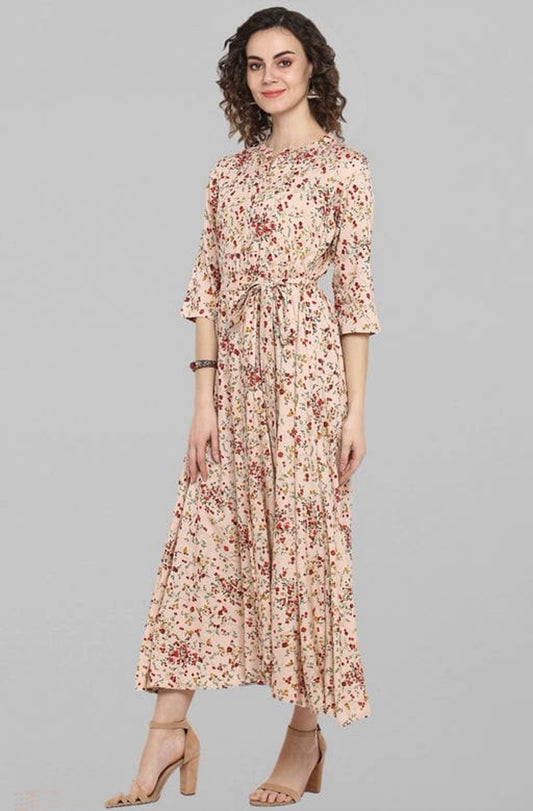 Women's Peach Pure Cotton Ethnic Dress