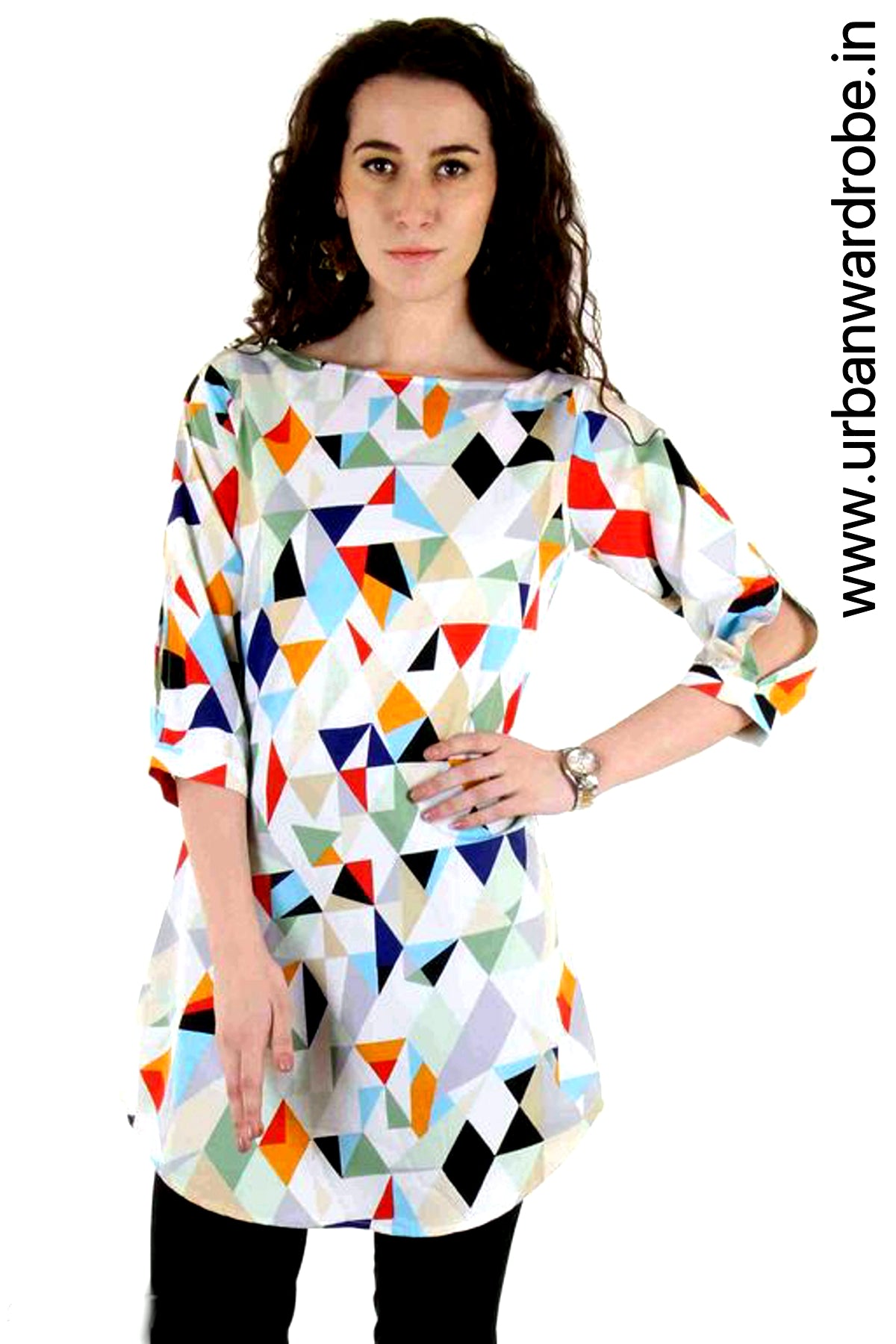 Off-white printed Tunic, has a round neck, three-quarter sleeves