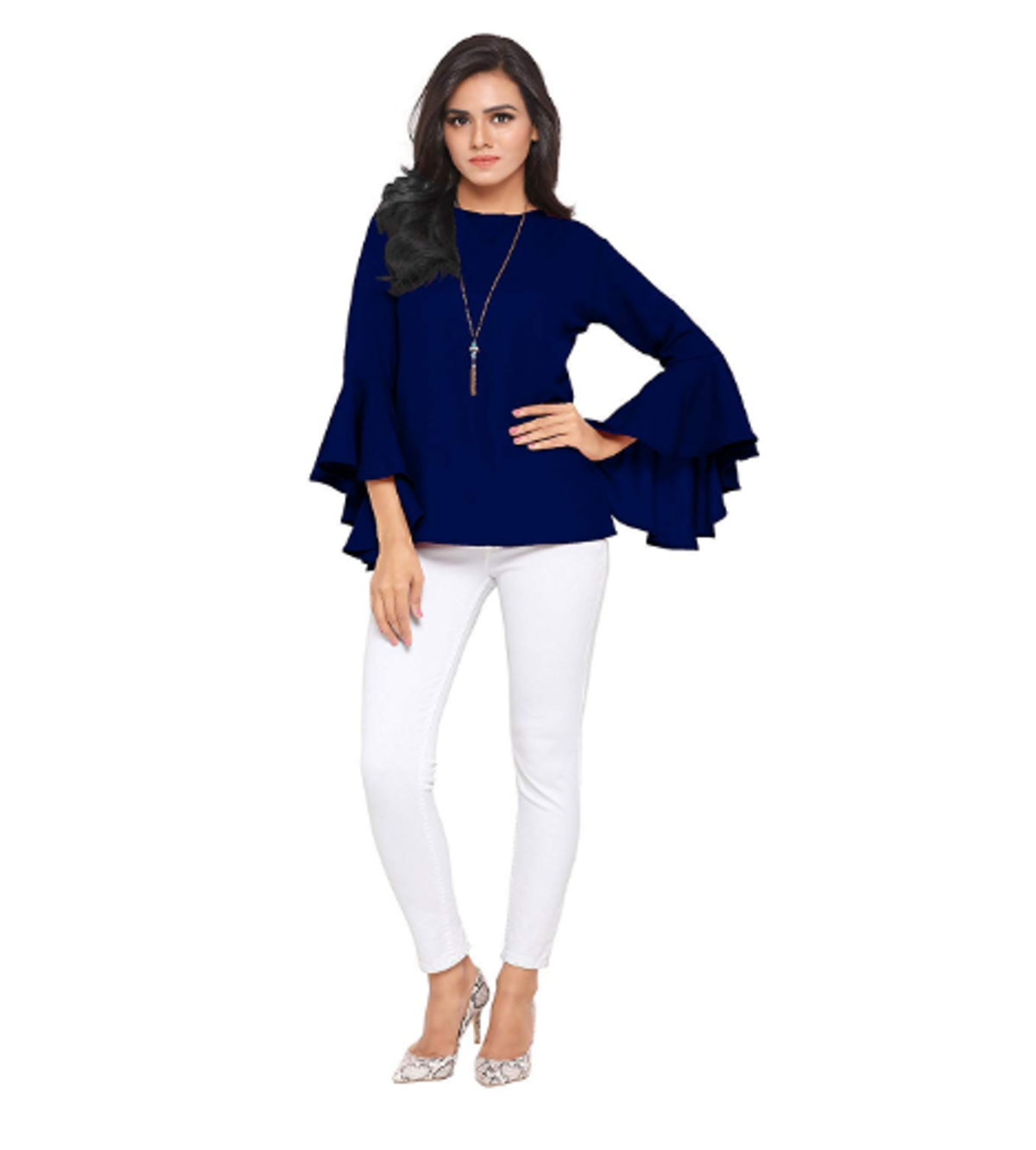 - Pattern: Blouse with flute sleeves